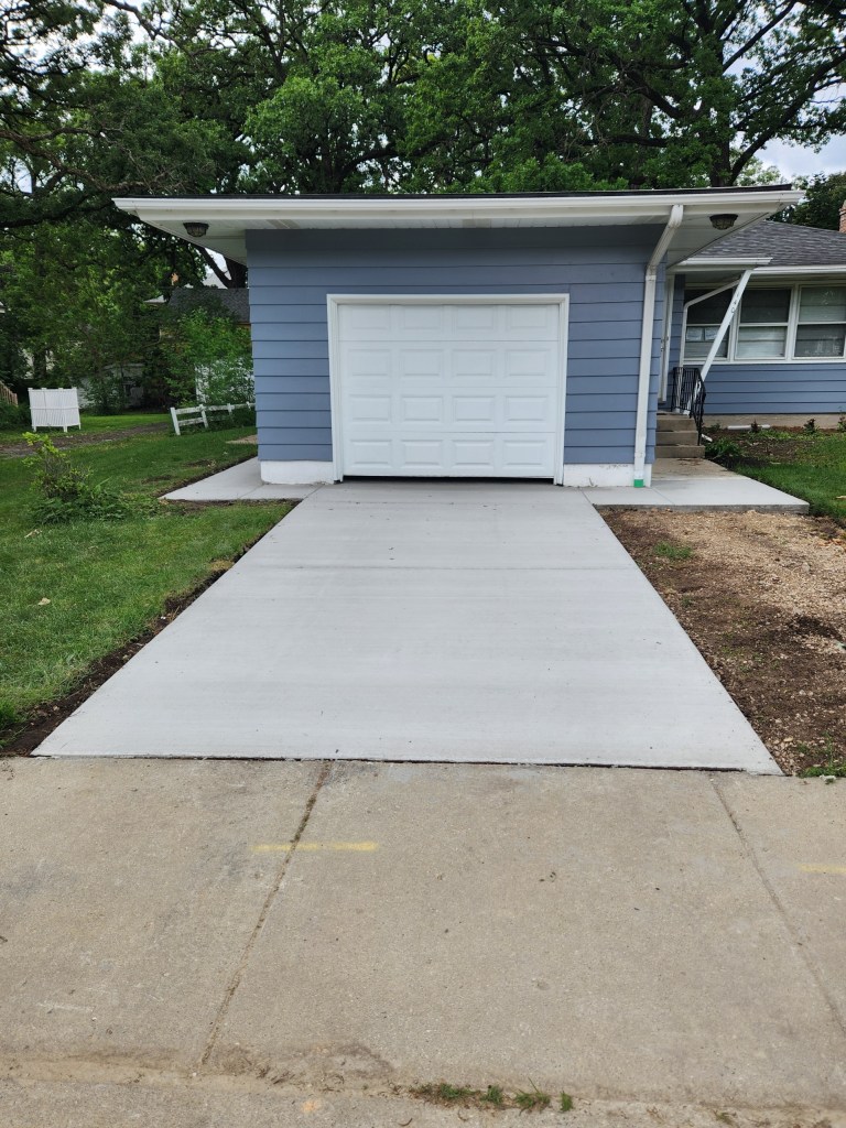 Removal and replacement of an asphalt parking lot in Harwood Heights, IL.Concrete driveway and private sidewalk replacement with extension in Elgin, IL. California Finish.Double asphalt driveway removal and replacement.