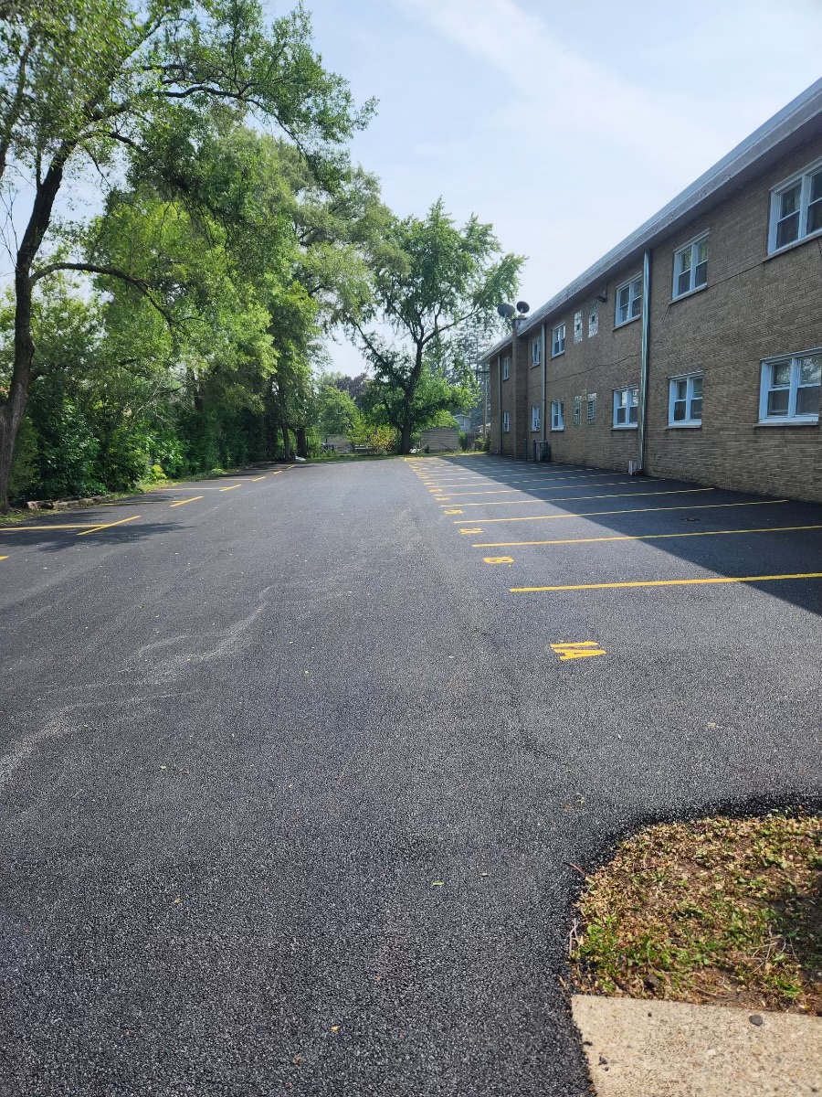 Asphalt Sealcoating and Striping.Asphalt parking lot removal and replacement with striping and numbers in Wheeling, IL.