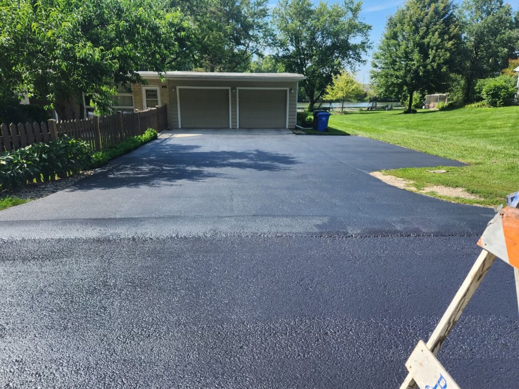 Concrete driveway and partial private sidewalk removal and replacement in Bartlett, IL with broom finish.Residential Sealcoating in South Elgin, IL.Asphalt driveway removal and replacement in Huntley, IL.