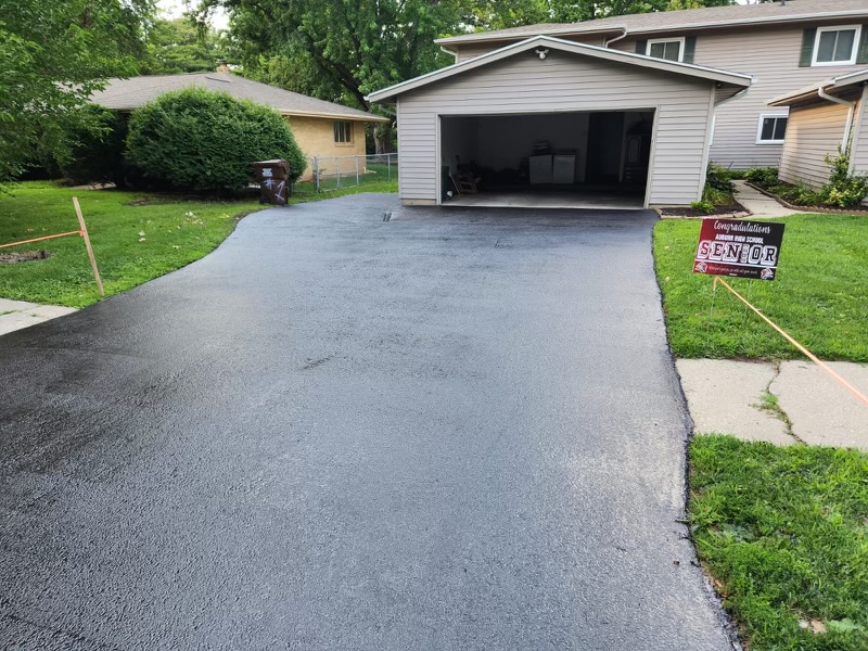 The installation process for asphalt driveways involves several key steps to ensure a durable and long-lasting surface. It begins with a thorough assessment and planning phase, where we evaluate the site layout and ensure compliance with village and township regulations regarding property lines, drainage, and driveway dimensions. If an existing driveway is present, the old asphalt or concrete is removed by breaking up the surface and hauling away debris. The area is then excavated to the required depth, with careful grading to ensure proper water drainage. A solid base layer, typically composed of crushed stone or gravel, is added and compacted to provide a stable foundation. Next, a binder layer of asphalt is applied for added strength, followed by the final top layer of asphalt, which is compacted to create a smooth, even surface. After installation, edges are smoothed, and any necessary transitions to sidewalks or roads are made. The surface is allowed to cure over time, with compliance checks throughout the process to meet all relevant village and township requirements. (The installation process may vary per project).